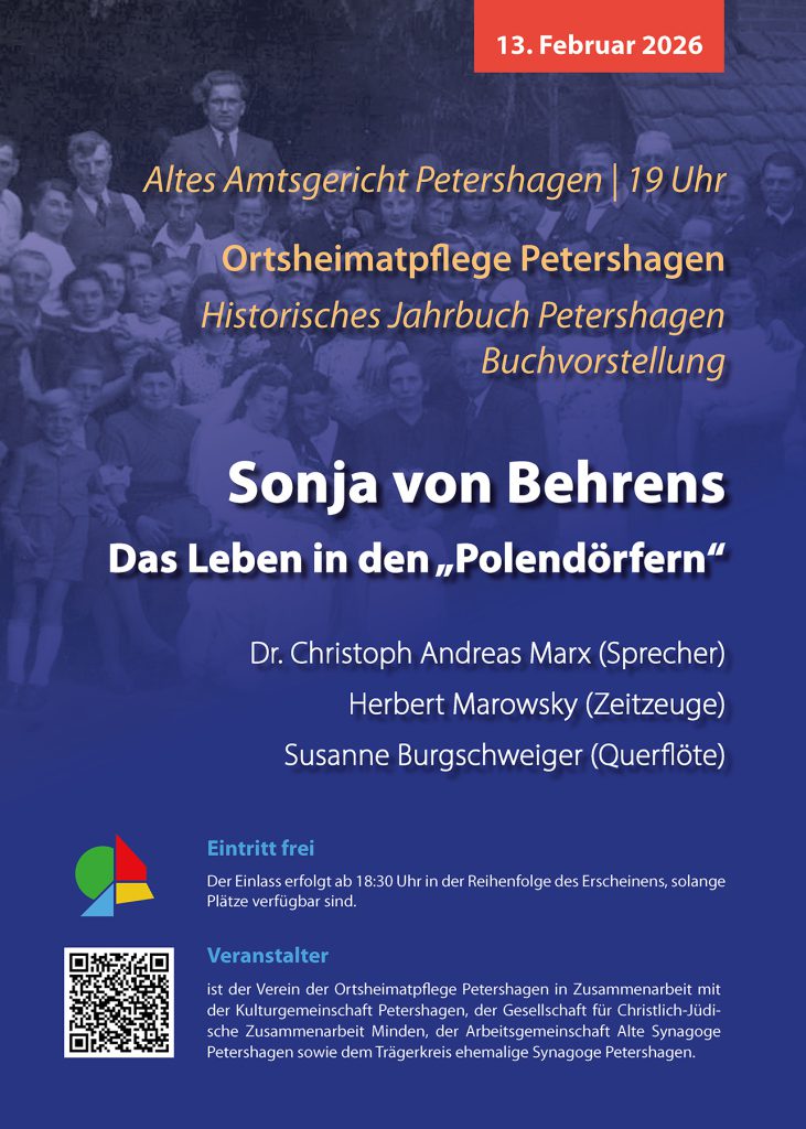 Eine Veranstaltung der Ortsheimatpflege Petershagen in Zusammenarbeit mit: Kulturgemeinschaft Petershagen, Gesellschaft für Christlich-Jüdische Zusammenarbeit Minden, Arbeitsgemeinschaft Alte Synagoge Petershagen, Trägerkreis ehemalige Synagoge Petershagen.